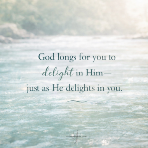 God longs for you to delight in Him—just as His delight is in you. Ephesians 1:4 reminds us: “Long before he laid down earth’s foundations, he had us in mind, had settled on us as the focus of his love, to be made whole and holy by his love,” (MSG).